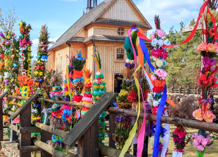 La Pasqua in Polonia si identifica con la Settimana Santa e inizia ovviamente la Domenica delle Palme durante la quale vengono distribuite appunto le palme ma impreziosite con nastri colorati, salici e piume: ci sono addirittura dei concorsi per eleggere le palme decorate più belle, come a Lipnica Murowana oppure a Lyse. Il Venerdì Santo, invece, si svolge la solenne processione della Via Crucis: viene organizzata in molte città ma quella più famosa è quella di Kalwaria Zebrzydowska. La mattina del Sabato Santo le famiglie polacche preparano lo święconka, che sarebbe un cestino decorato all’interno del quale ci sono le pietanze più tipiche della festività, che devono essere benedette dal parroco e poi consumate la mattina di Pasqua. Nella giornata di Pasqua, tutti i polacchi partecipano alla Messa della Resurrezione, poi si rientra a casa per mangiare insieme le pietanze benedette il giorno prima. Nel Lunedì dell’Angelo, ossia lo Śmingus-Dyngus, per tradizione si svolgono i picnic all’aperto ma si gioca anche con i tradizionali gavettoni d’acqua che in realtà è un rito molto antico legato alla fertilità della terra.