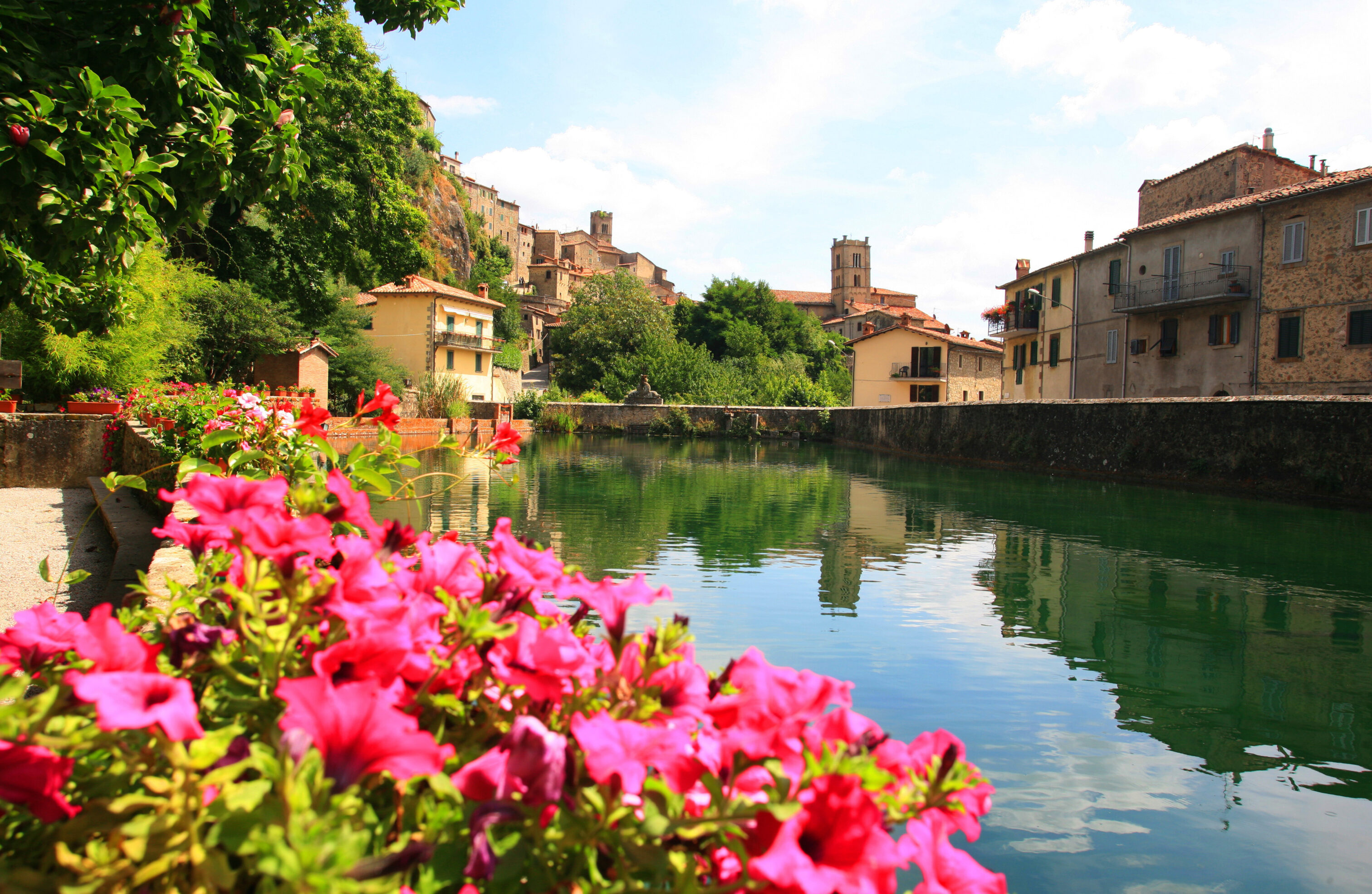 Tra i più bei borghi sull’acqua della Toscana non si può dimenticare Santa Fiora, bellissimo paesino del grossetano situato alle falde del Monte Amiata. Visitate la Peschiera, circondata da magnolie, tigli e cipressi, ma soprattutto la vicina Pieve della Madonna delle Nevi, dal cui pavimento in pietra potrete scorgere le sorgenti del fiume Fiora.